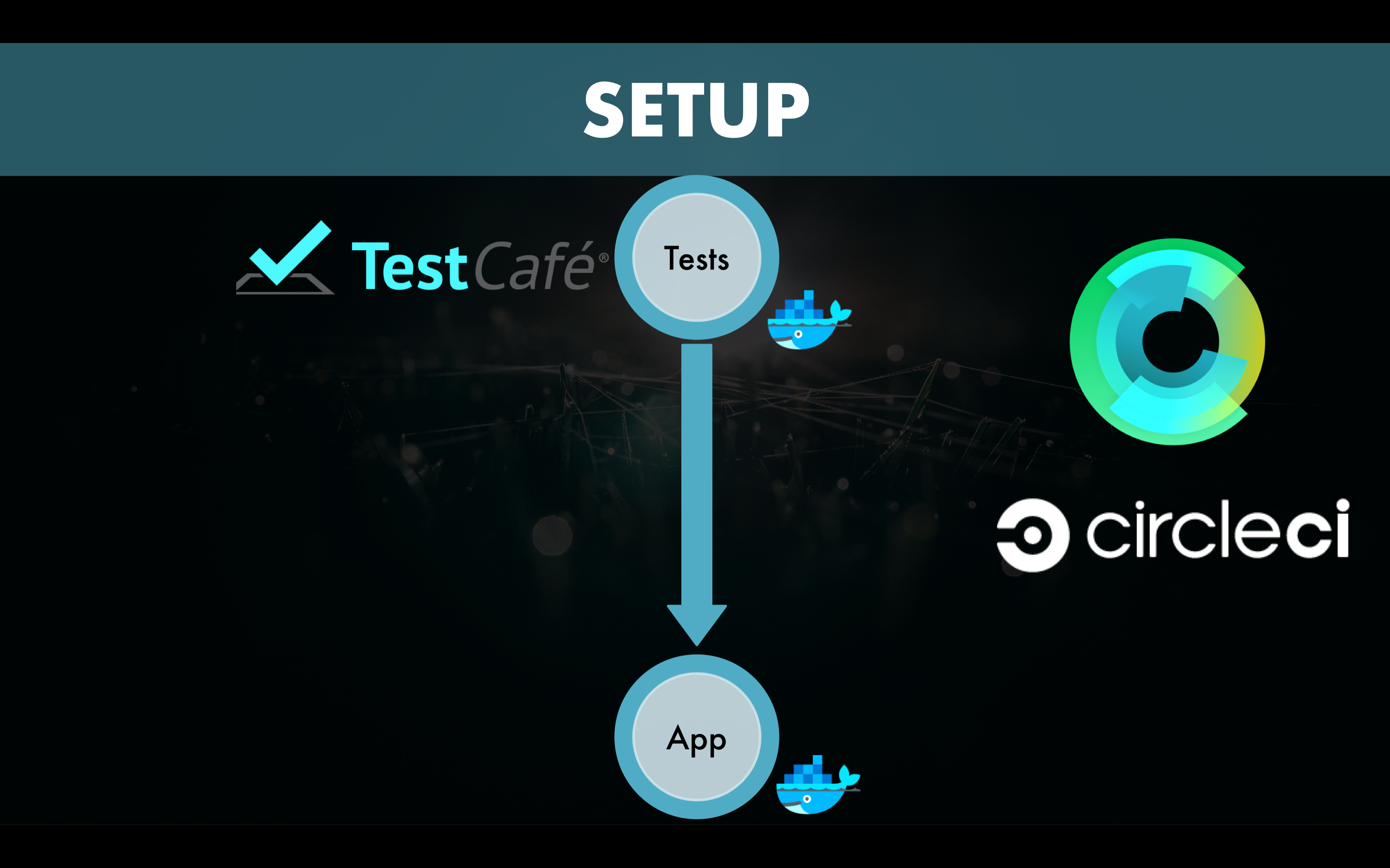 I have implemented a proof of concept in CircleCI. Of course, the continuous integration can also be implemented on TravisCI, Jenkins, and so on. Then I used TestCafe to write the application tests. It’s a Node.js tool for performing end-to-end tests.